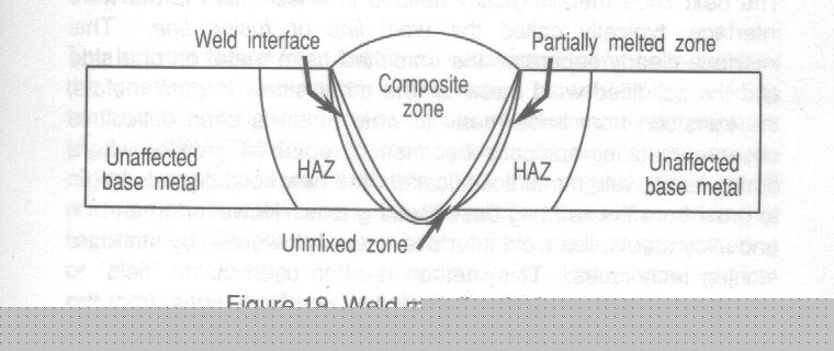 As a result of the chemically nonmatching filler metal, heat distribution, and electrical arc characteristics, the weld joint is usually a chemically heterogeneous composite consisting of as many as six metallurgical distinct regions.